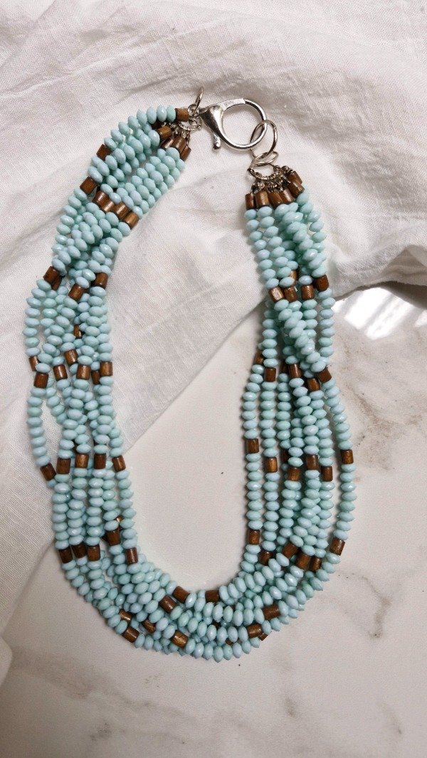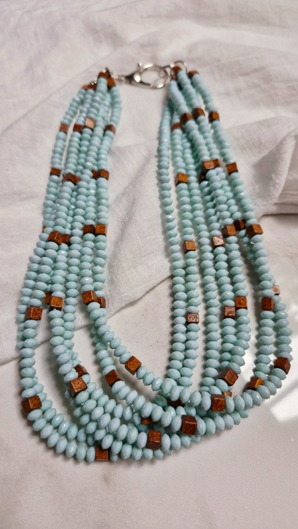 Collar de cuentas de acrílico combinado con madera, liviano y cómodo para complementar tus outfits y verte única!