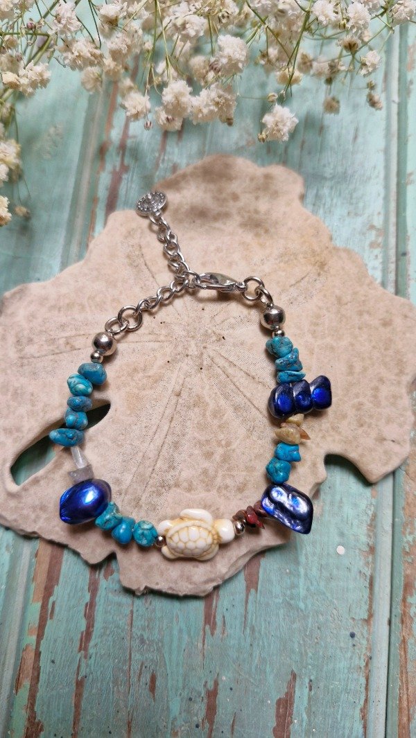 Pulsera de piedra y resinas.Cuando termines la compra avisanos de que medida es tu muñeca o tobillo asi la ajustamos a tu medida! Tenes que saber que no se puede mojar, pero va a dejar tu look de veranito increible.