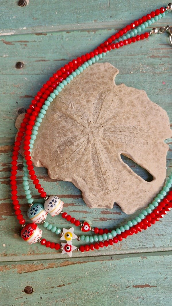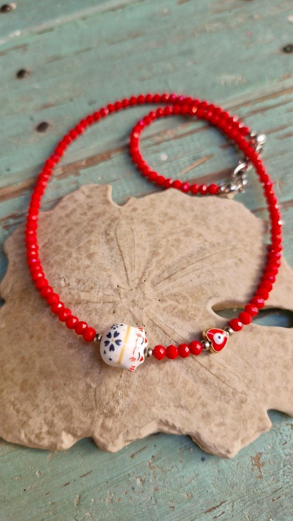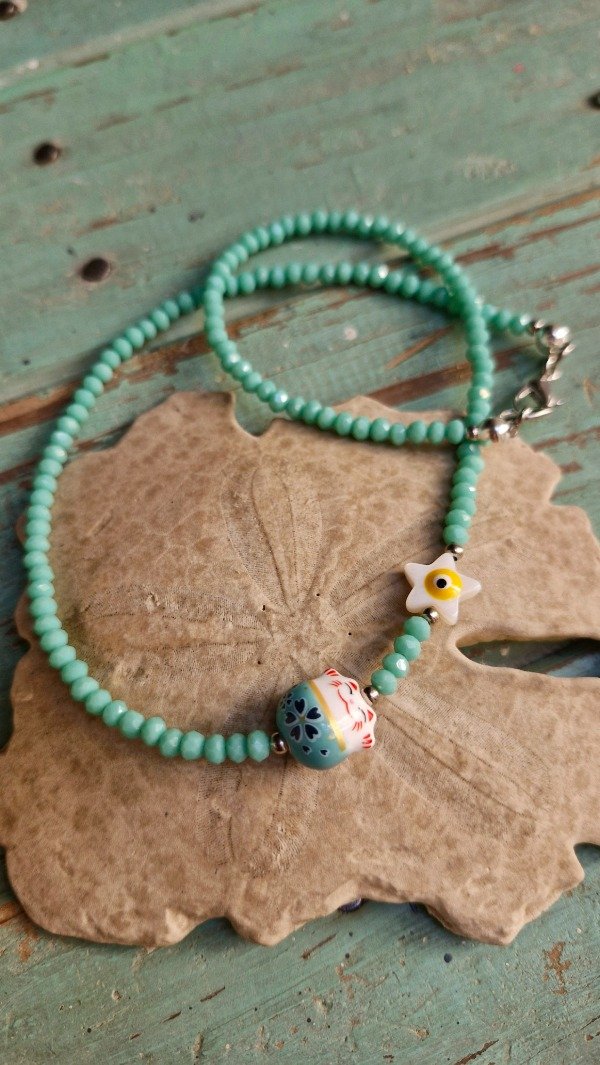 Collar con crital de roca y amuletos (49 cm de largo de extremo a extremo)