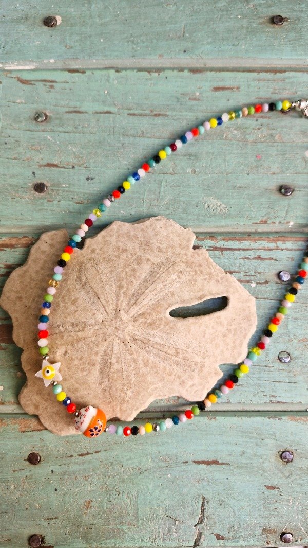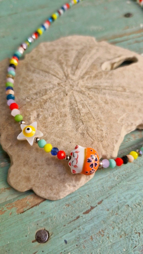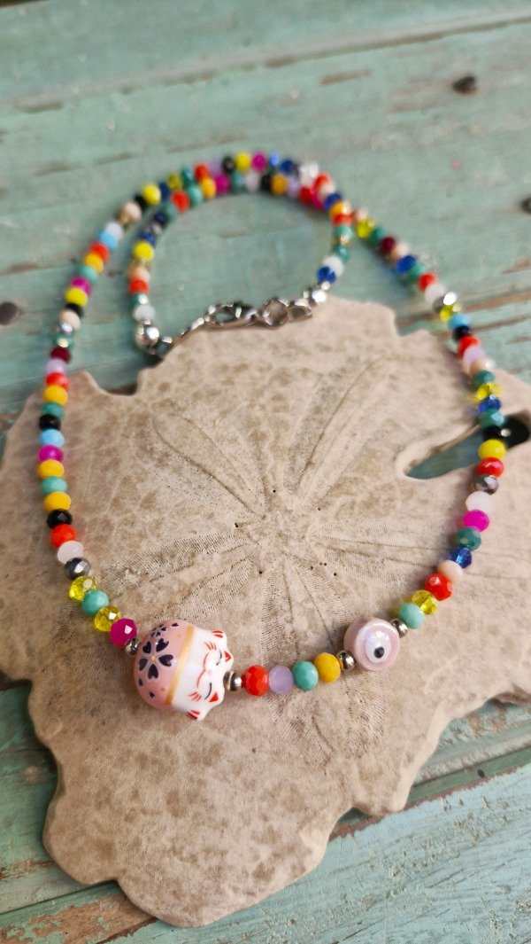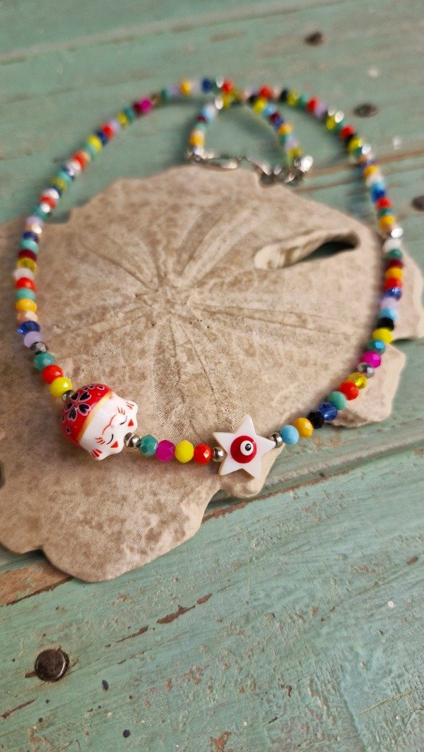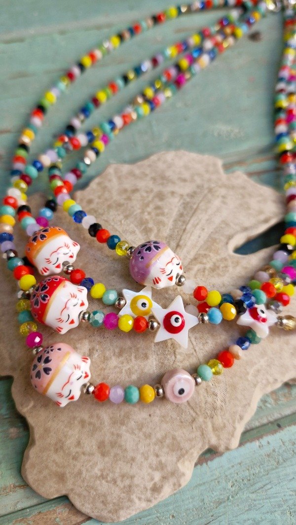 Collar con crital de roca y amuletos (49 cm de largo de extremo a extremo)