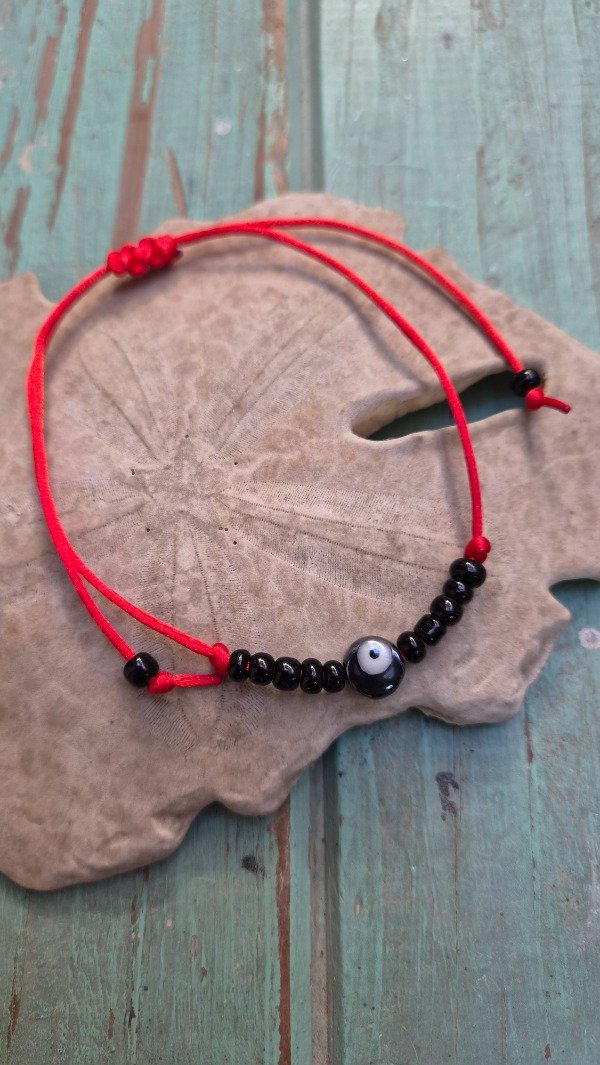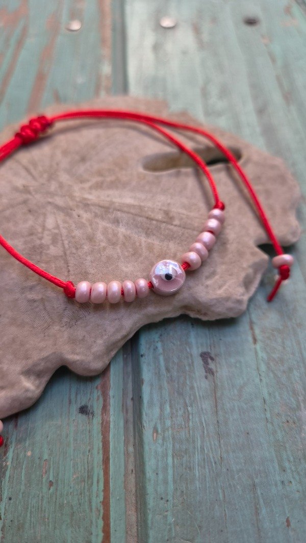 Pulsera de hilo chino rojo protector con dije de ceramica de ojo turco para proteger contra la envidia, las malas energías y el mal de ojo y dije de ceramica de gatito amuleto de la suerte que trae buena fortuna 💰 a su dueño.