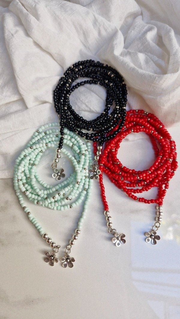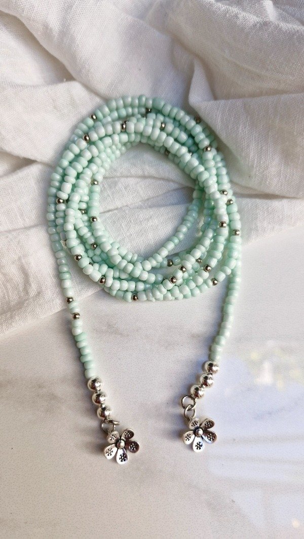 Collar para usar como desees, enroscado en el cuello o bien logrando un efecto cascada de 170 cm de largo aproximadamente. Es ideal para combinar con otros collares.