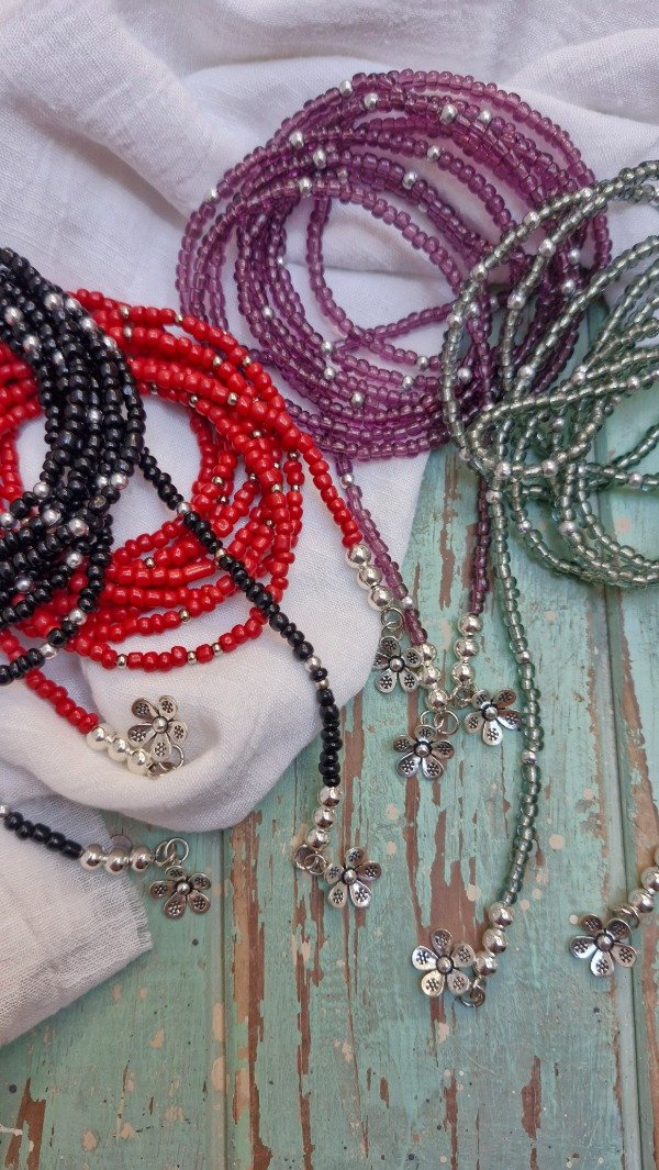 Collar para usar como desees, enroscado en el cuello o bien logrando un efecto cascada de 190 cm de largo aproximadamente. Es ideal para combinar con otros collares.
