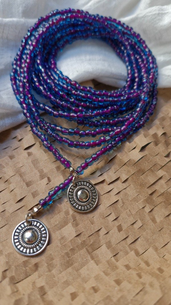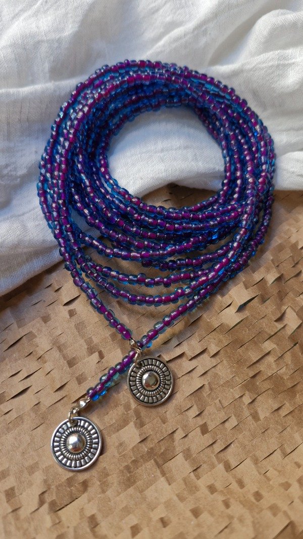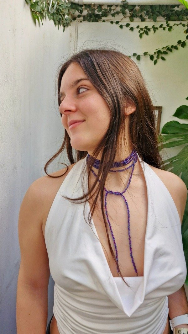 Collar para usar como desees, enroscado en el cuello o bien logrando un efecto cascada de 240 cm de largo. Es ideal para combinar con otros collares.