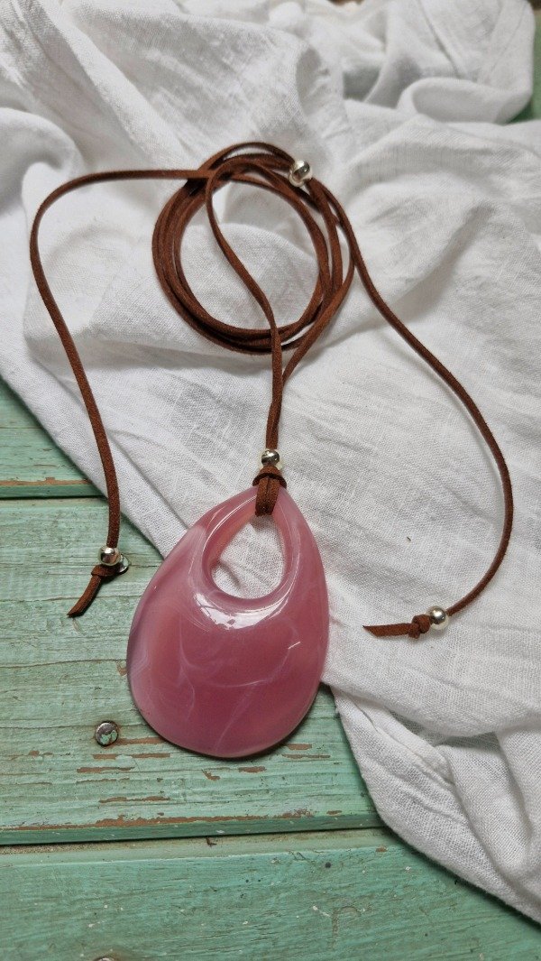 Lazo de gamuza con dije de resina super liviano para usar solo o combinado con otros collares! 🔥