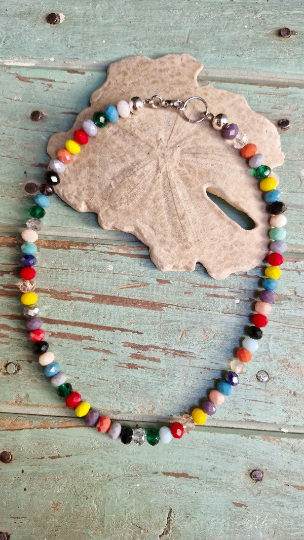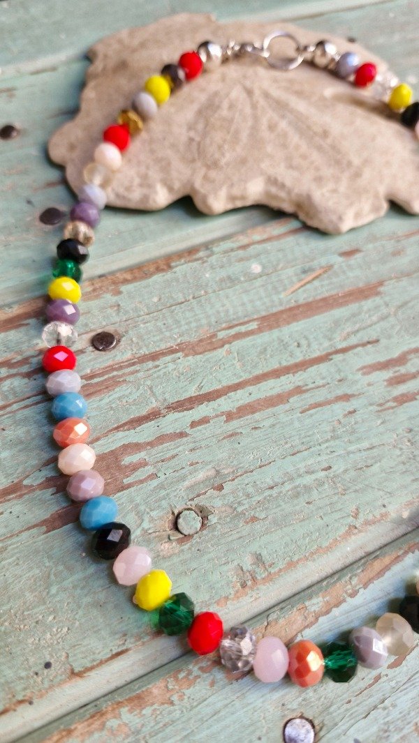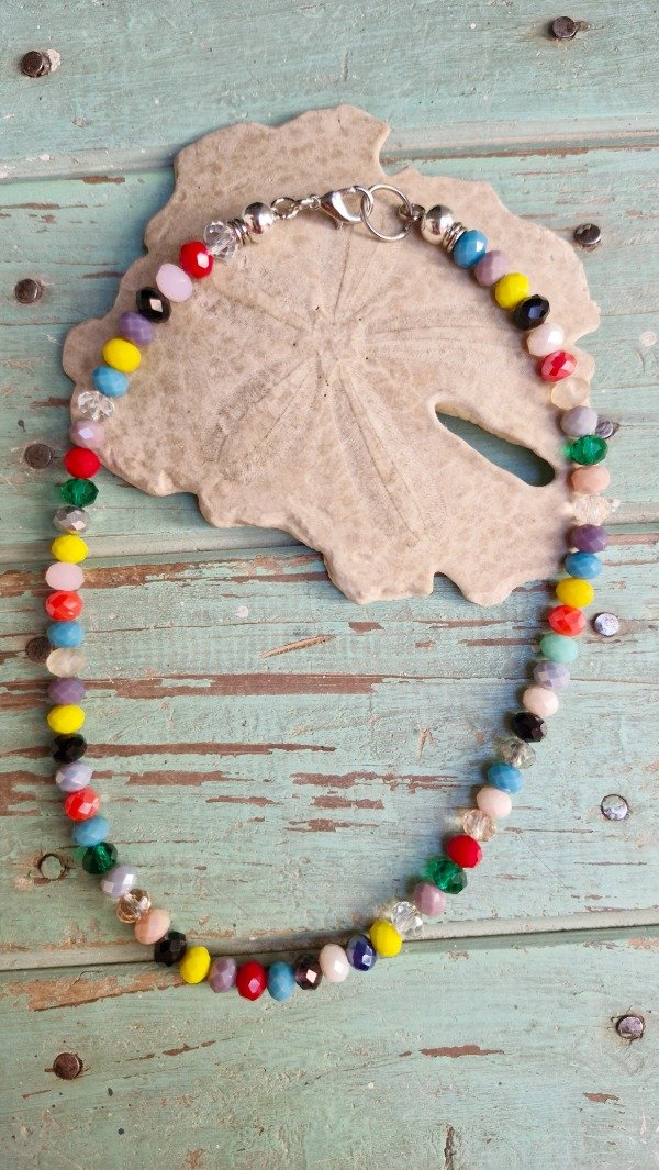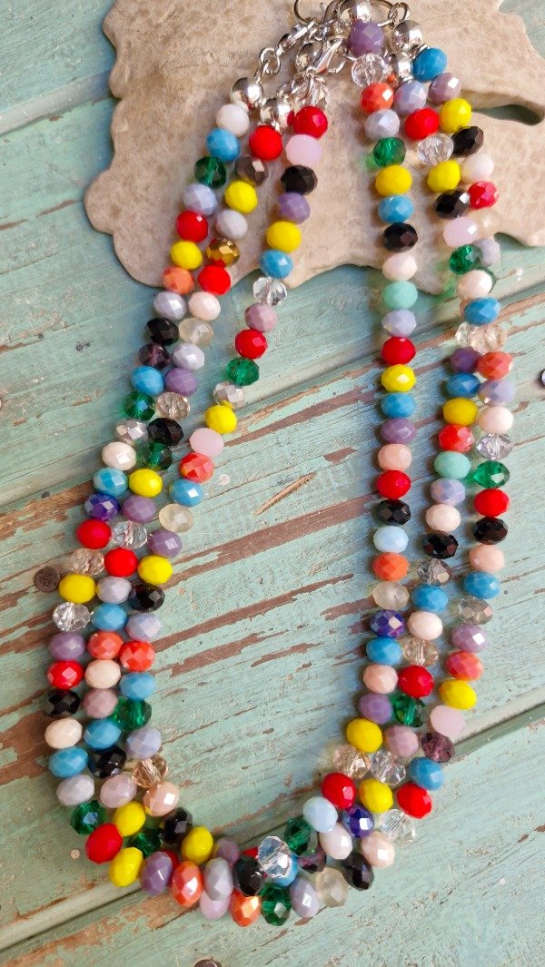 Collar con crital de roca corto para usar pegado al cuello y si lo combinas con mas collares es una bomba!!! De extremo a extremo abiertos miden 43 cm. Son todos de combinación diferente, toca toca la suerte es loca!