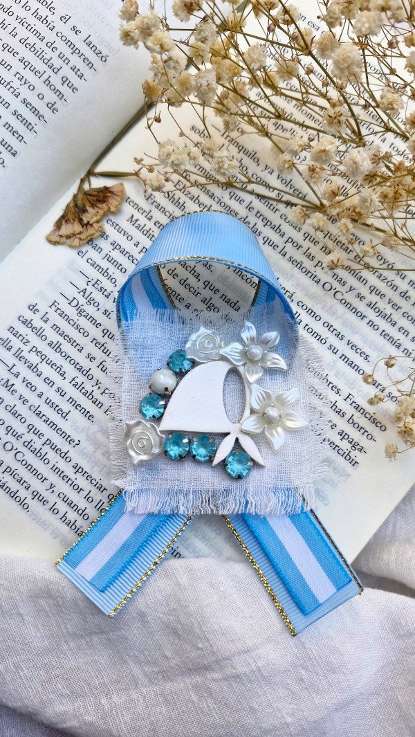 Prendedor patrio, bandera argentina y pin del pañuelo blanco, símbolo internacional de derechos humanos y de lucha popular.