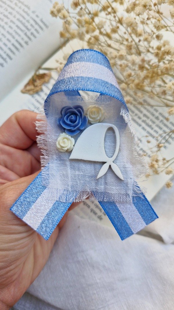 Prendedor patrio, bandera argentina y pin del pañuelo blanco, símbolo internacional de derechos humanos y de lucha popular.
