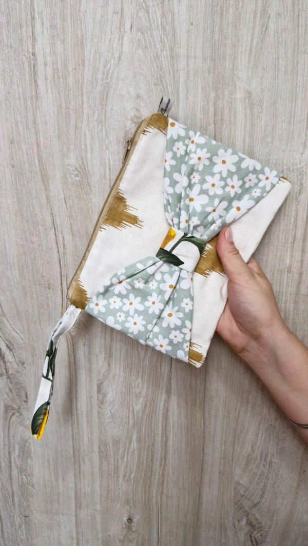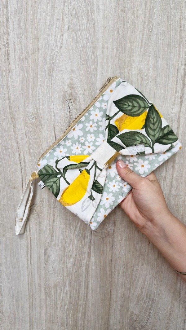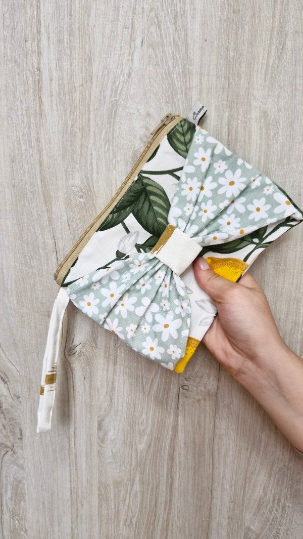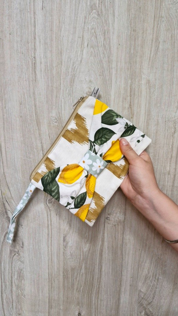 Neceser ideal para llevar cosas pequeñas en tu cartera y que no se pierdan! Con cierre, manija y moño que es un amor. Son todos diferentes. Medidas aproximadas 21 cm x 16 cm